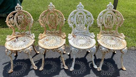 456 Four White Iron Patio Chairs