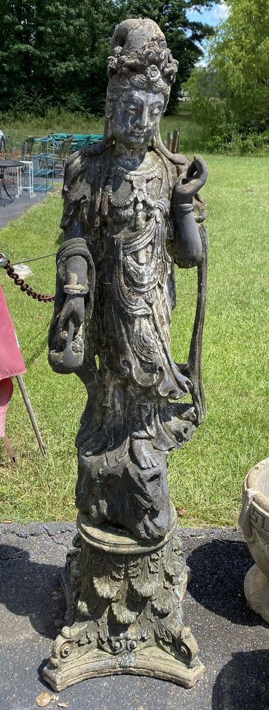 Large Empress Style Concrete Outdoor Statue, two piece, finish is weathered. Large Empress Style Concrete Outdoor Statue, two piece, finish is weathered.