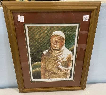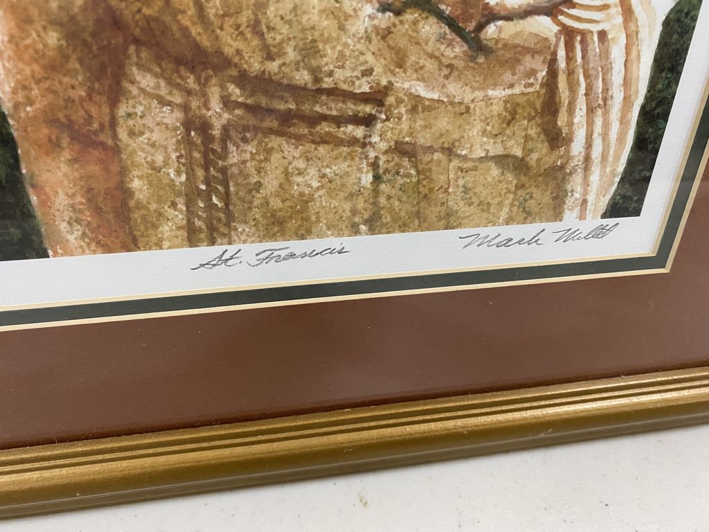 Mark Millet Artist Signed Print, St. Francis, numbered 2/200, matted, framed, 20"h., 17"w. Mark Millet Artist Signed Print, St. Francis, numbered 2/200, matted, framed, 20"h., 17"w.