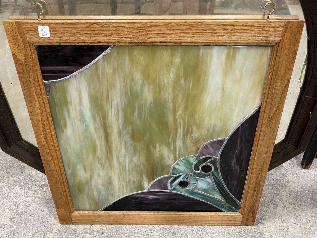 Stain Leaded Glass window panel, oak wood framed, 28" x 28". Stain Leaded Glass window panel, oak wood framed, 28" x 28".