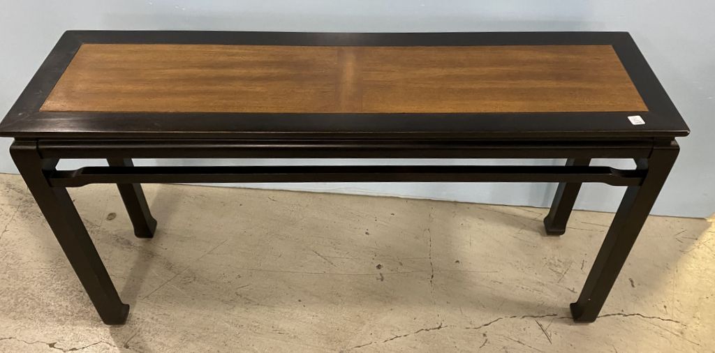 Oriental Style Sofa Table, black and wood finish, 28"h., 52"w. Oriental Style Sofa Table, black and wood finish, 28"h., 52"w.