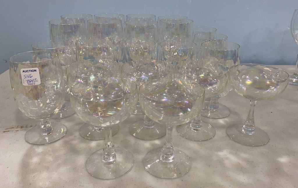 Group of Opalescent Glass Stemware, 22 total pieces. Group of Opalescent Glass Stemware, 22 total pieces.