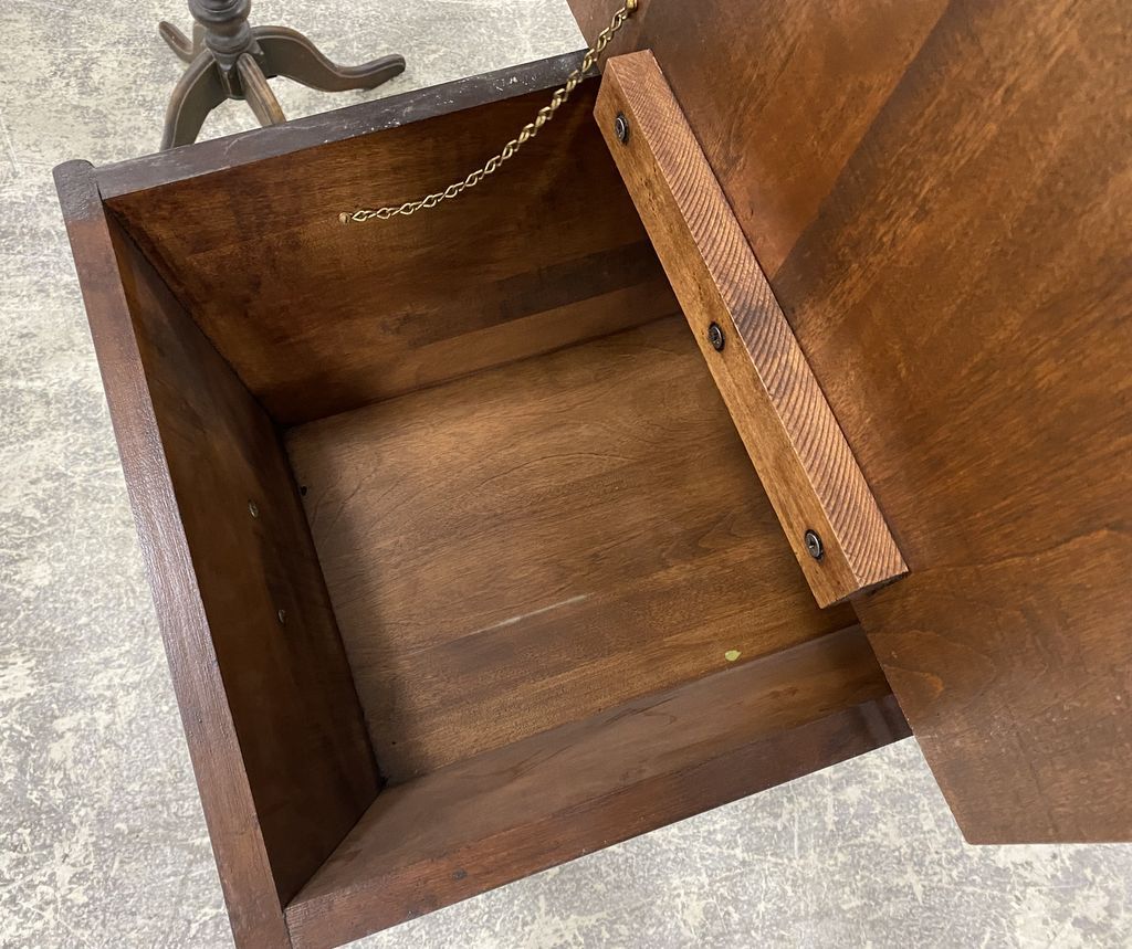 Colonial Style Dough Box Side Table, cherry, late 20th century, light wear, lift top, 25"h., 26"d., 18"w. Colonial Style Dough Box Side Table, cherry, late 20th century, light wear, lift top, 25"h., 26"d., 18"w.