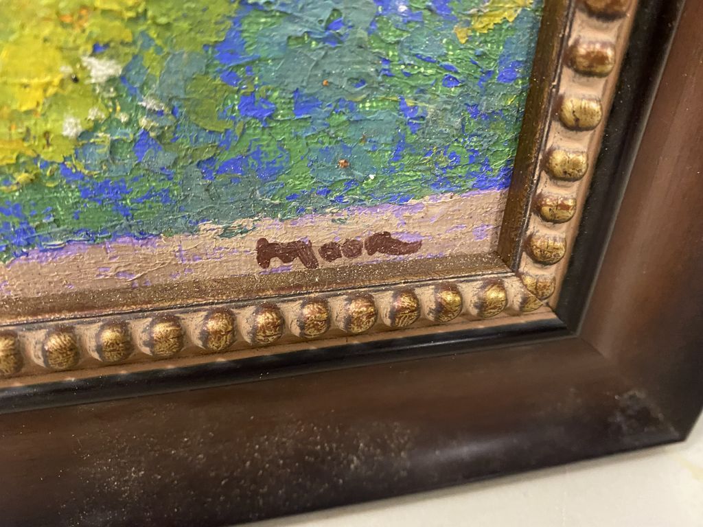 "Garden District House" Oil by Richard Moor, framed 12"h., 10"w. Retail 150.00 "Garden District House" Oil by Richard Moor, framed 12"h., 10"w. Retail 150.00