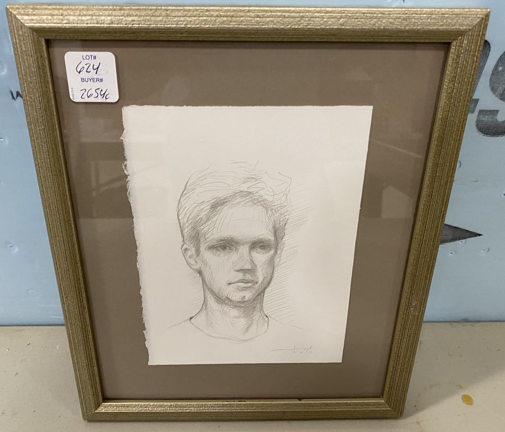 Jerrod Partridge "Self Portrait" Sketch, matted, framed, 11"h., 9"w., MS Artist. Jerrod Partridge "Self Portrait" Sketch, matted, framed, 11"h., 9"w., MS Artist.