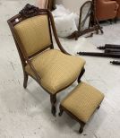 Antique French Chair and Ottoman, Walnut, clean fabric, parlor chair, with ottoman. Antique French Chair and Ottoman, Walnut, clean fabric, parlor chair, with ottoman.