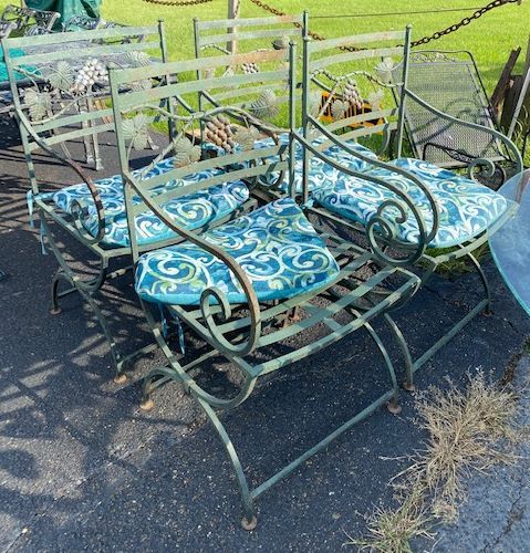 Four Grapevine Metal Outdoor Chairs, with cushions. Four Grapevine Metal Outdoor Chairs, with cushions.