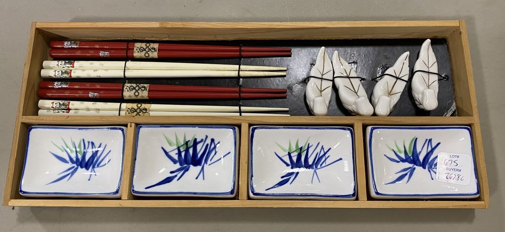 Asian Sauce Kit, bowls, chop sticks, in wood crate. Asian Sauce Kit, bowls, chop sticks, in wood crate.
