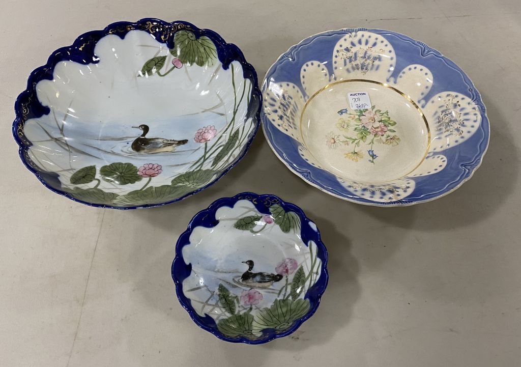 708 Two Oriental Hand Painted Duck Bowls and Hand Painted bowl