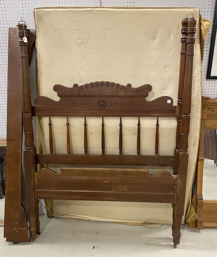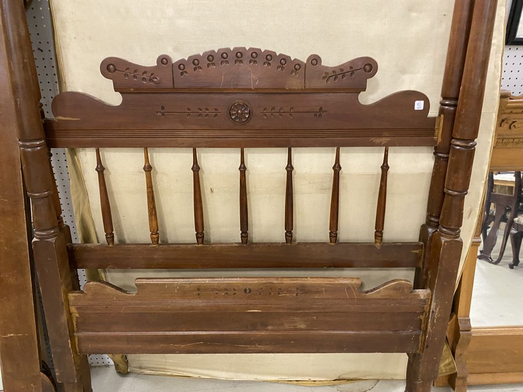 Antique Victorian Style Canopy Bed, walnut, 3/4 size, poster with canopy, has scratches and age wear. Antique Victorian Style Canopy Bed, walnut, 3/4 size, poster with canopy, has scratches and age wear.