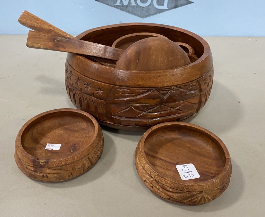 Wood Salad set, salad bowl and bowls, carved. Wood Salad set, salad bowl and bowls, carved.