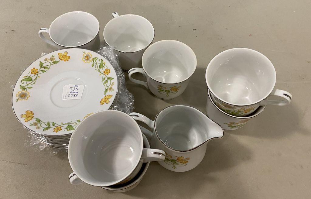 EKCO International China Partial Set, 7 saucers, 7 cups, creamer. EKCO International China Partial Set, 7 saucers, 7 cups, creamer.