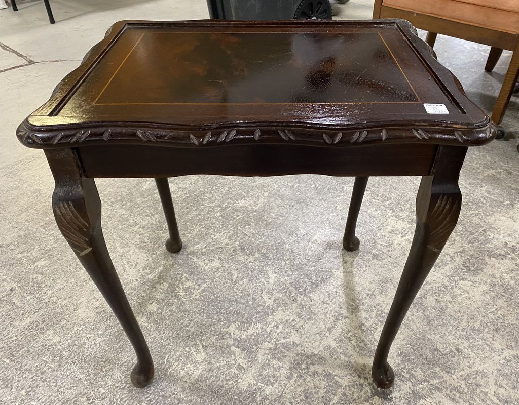 Vintage Small Side Table, burl mahogany, 21"h., 21"w. Vintage Small Side Table, burl mahogany, 21"h., 21"w.