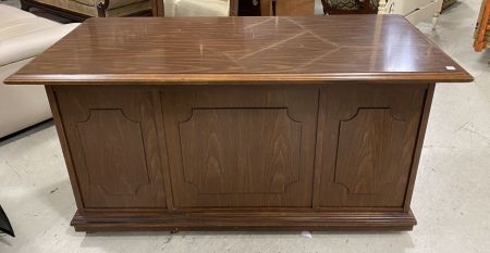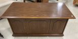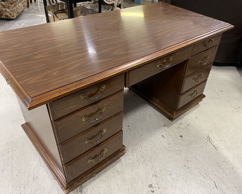 Modern Oak Finish Kneehole Desk, light wear, 30"h., 59"w., 30"d. Modern Oak Finish Kneehole Desk, light wear, 30"h., 59"w., 30"d.