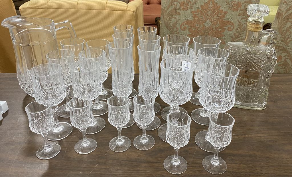 Group of Glass Stemware. Crystal, 26 pieces, decanter and water pitcher Group of Glass Stemware. Crystal, 26 pieces, decanter and water pitcher