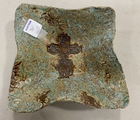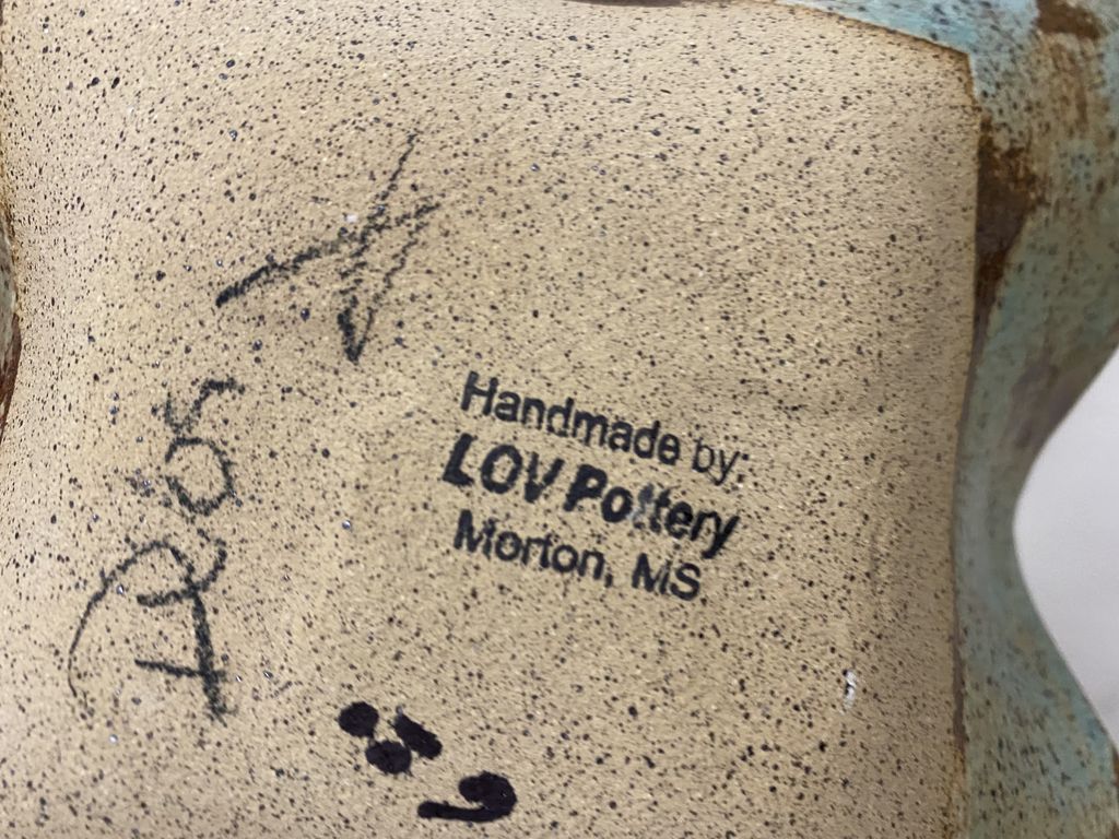 Lov Pottery Morton MS Bowl, handcrafted, stoneware, with cross emblem, 2"h., 9"w. Lov Pottery Morton MS Bowl, handcrafted, stoneware, with cross emblem, 2"h., 9"w.