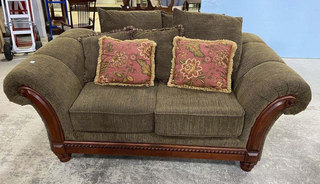 Hillcraft Furniture Company Love Seat, two cushions, have throw pillows, 72" Hillcraft Furniture Company Love Seat, two cushions, have throw pillows, 72"