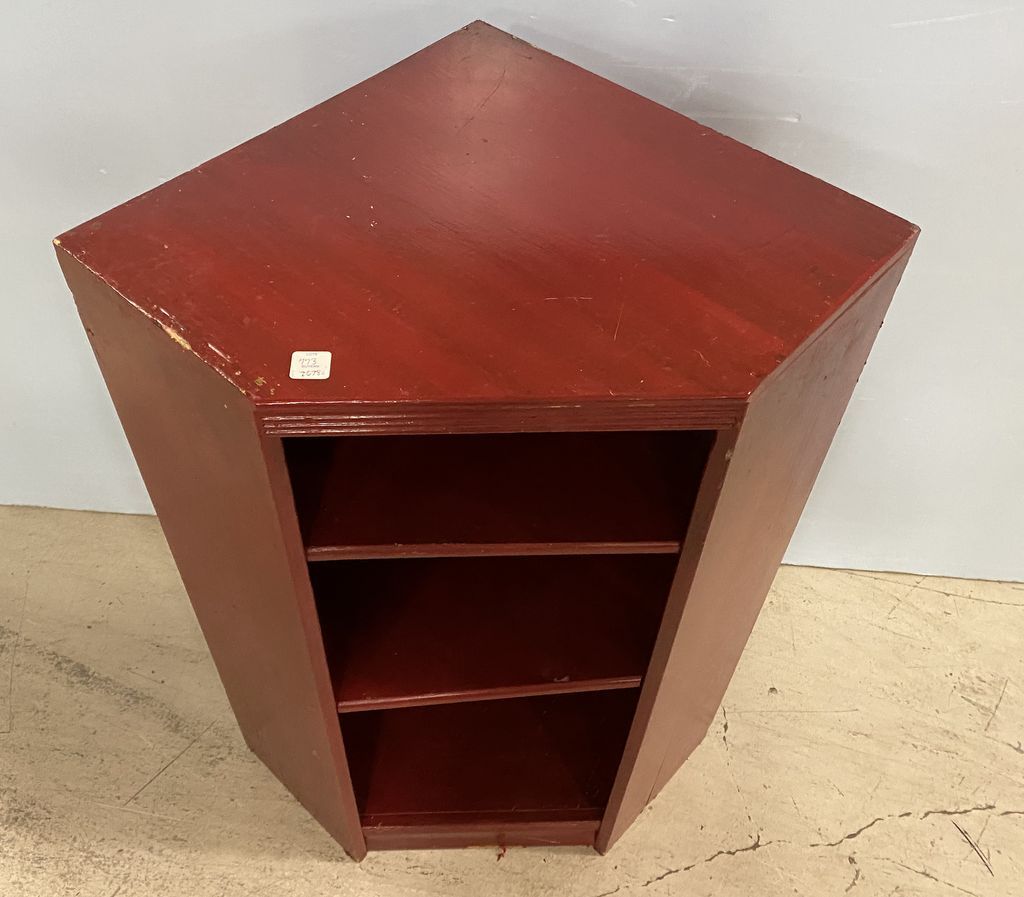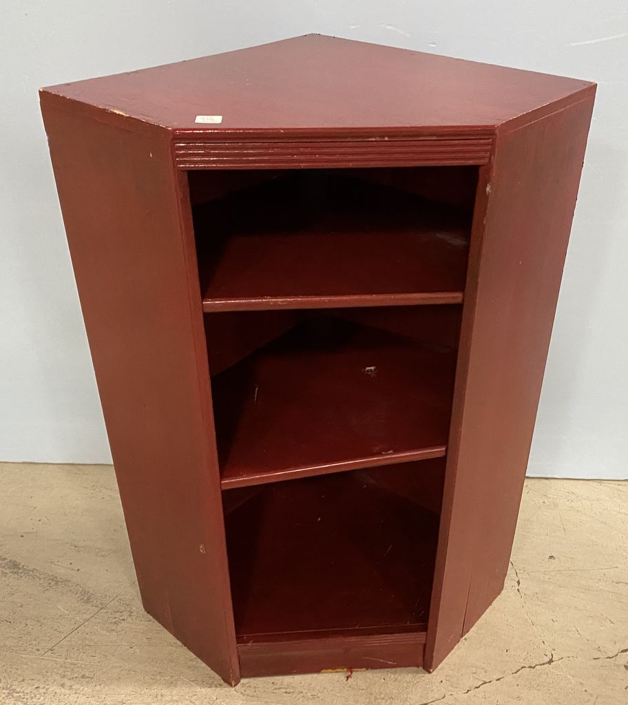 Hand Crafted Red Painted Corner Cabinet, two shelves, 35"h. Hand Crafted Red Painted Corner Cabinet, two shelves, 35"h.