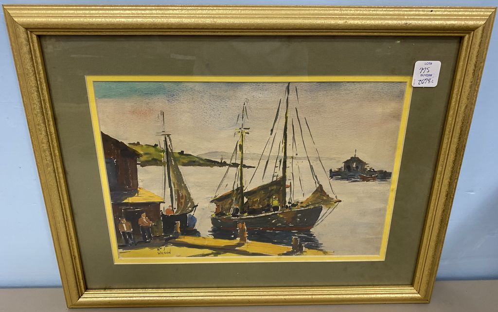 W. J. Wilson Sailboat Watercolor, matted, framed, 14"h., 17"w. W. J. Wilson Sailboat Watercolor, matted, framed, 14"h., 17"w.