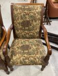 Pair of Fairfield Arm Chairs, cherry, Elephant fabric, needs cleaning. Pair of Fairfield Arm Chairs, cherry, Elephant fabric, needs cleaning.