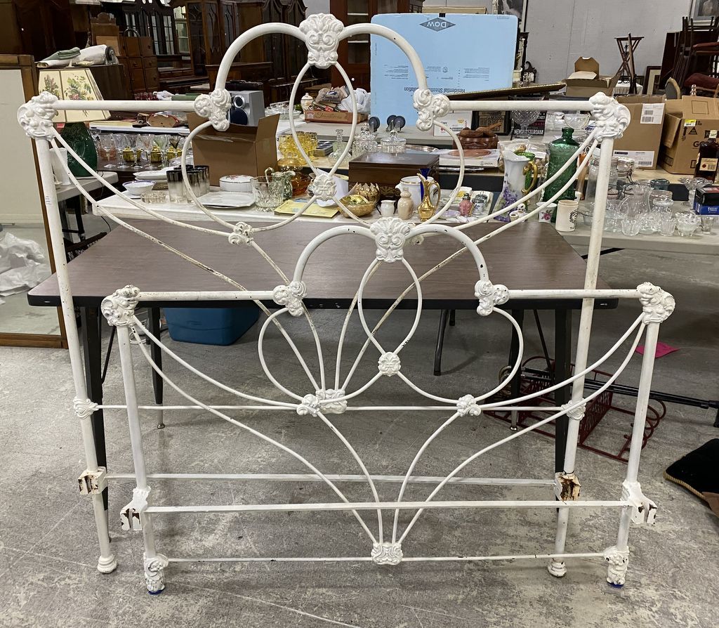 Vintage White Painted Iron 52" Bed, has metal rails. Vintage White Painted Iron 52" Bed, has metal rails.