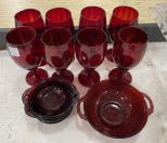 8 Red Glass Wine goblets, and red small bowls. 8 Red Glass Wine goblets, and red small bowls.