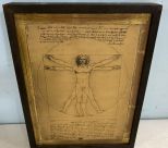 Framed Vitruvian Man Print, gold trim, wood frame, 16"h., 12"w. Framed Vitruvian Man Print, gold trim, wood frame, 16"h., 12"w.