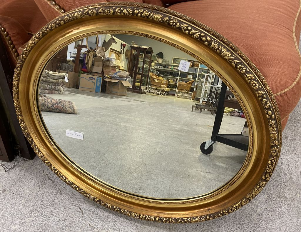 Gold Gilt Framed Oval Mirror, 32"h. Gold Gilt Framed Oval Mirror, 32"h.