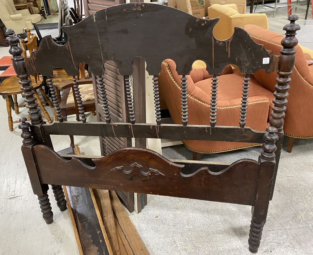 Antique Double Bed 53"w., has rails, Jenny Lind style. Antique Double Bed 53"w., has rails, Jenny Lind style.