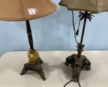 Two Decorative Table Lamps, metal and footed with shades, 32"h. Two Decorative Table Lamps, metal and footed with shades, 32"h.