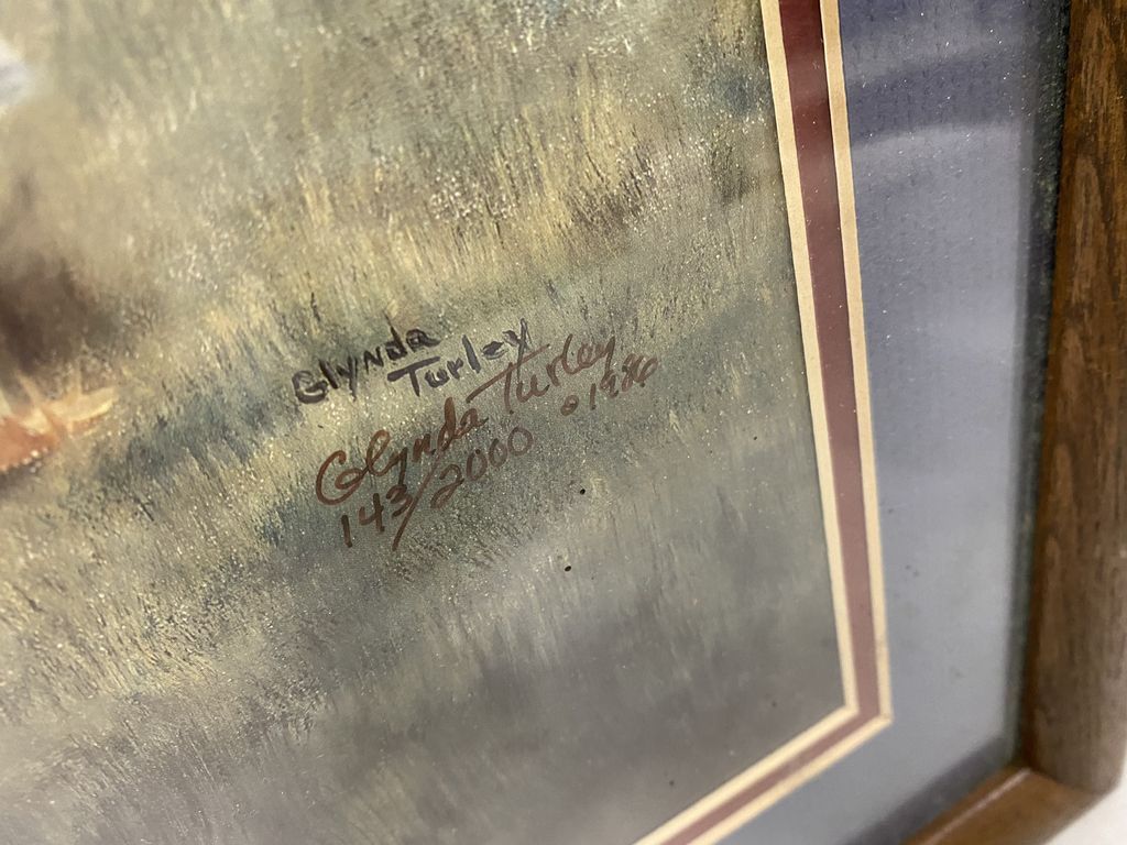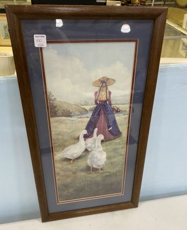 Glynda Turley 1986 Signed Print, Lady and geese, numbered 143/2000, matted, framed, 25"h., 14"w. Glynda Turley 1986 Signed Print, Lady and geese, numbered 143/2000, matted, framed, 25"h., 14"w.