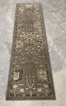 Machine Made Runner, green, needs cleaning, 2' x 7'. Machine Made Runner, green, needs cleaning, 2' x 7'.