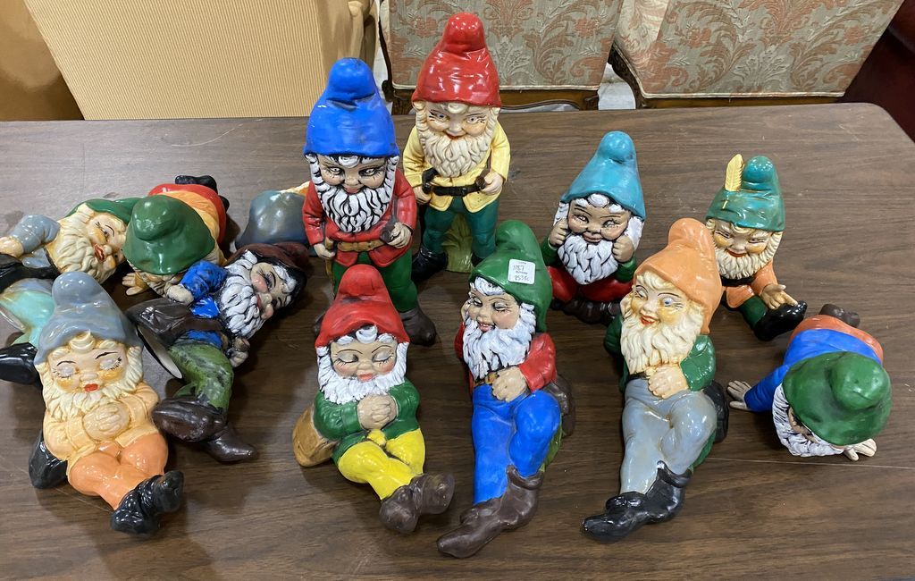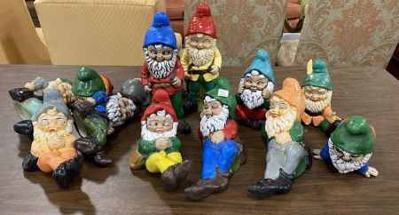 Collection of Ceramic hand painted garden gnomes, 12"h. Collection of Ceramic hand painted garden gnomes, 12"h.