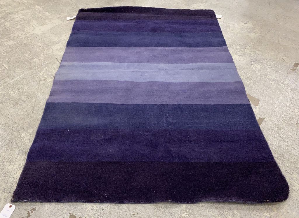 Tufted Loom Carpets India Blue Rug 5' x 7'6, wool, striped pattern, needs cleaning. Tufted Loom Carpets India Blue Rug 5' x 7'6, wool, striped pattern, needs cleaning.