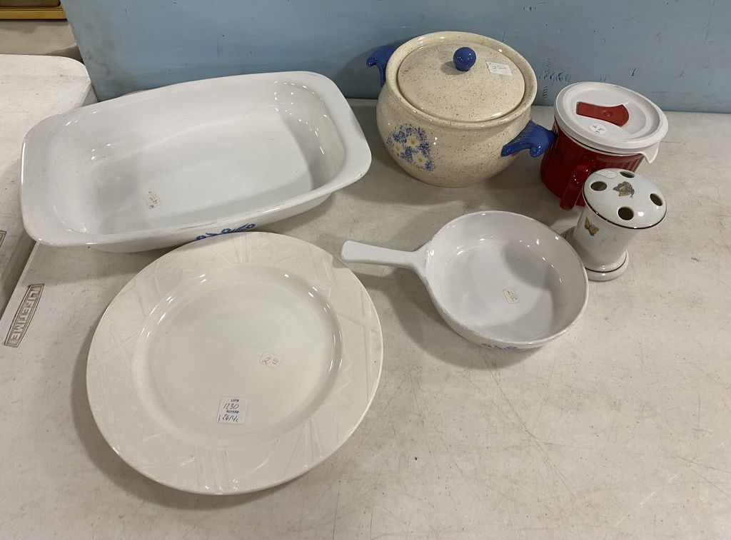 Group of cooking ware, ironstone platters, cover jar, bowl, cup. Group of cooking ware, ironstone platters, cover jar, bowl, cup.