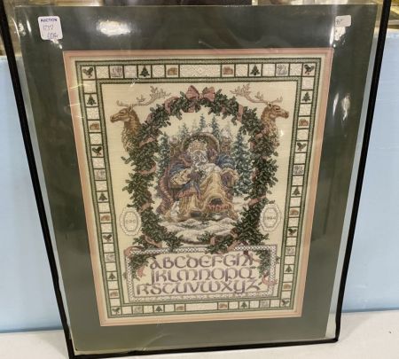 Christmas Alphabet Sampler, unframed, plastic case, 21"h., 17"w. Christmas Alphabet Sampler, unframed, plastic case, 21"h., 17"w.