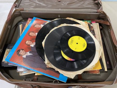 Group of Record Albums. 7" and 12" vinyl. Music from the 60's, 70's and 80's in a suitcase. Group of Record Albums. 7" and 12" vinyl. Music from the 60's, 70's and 80's in a suitcase.
