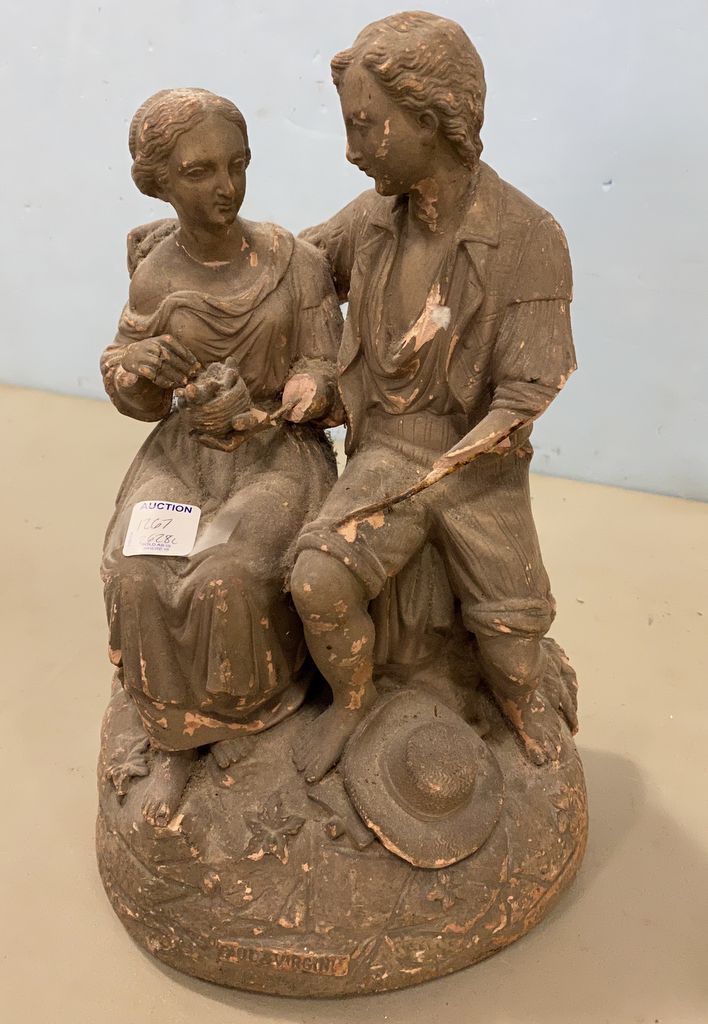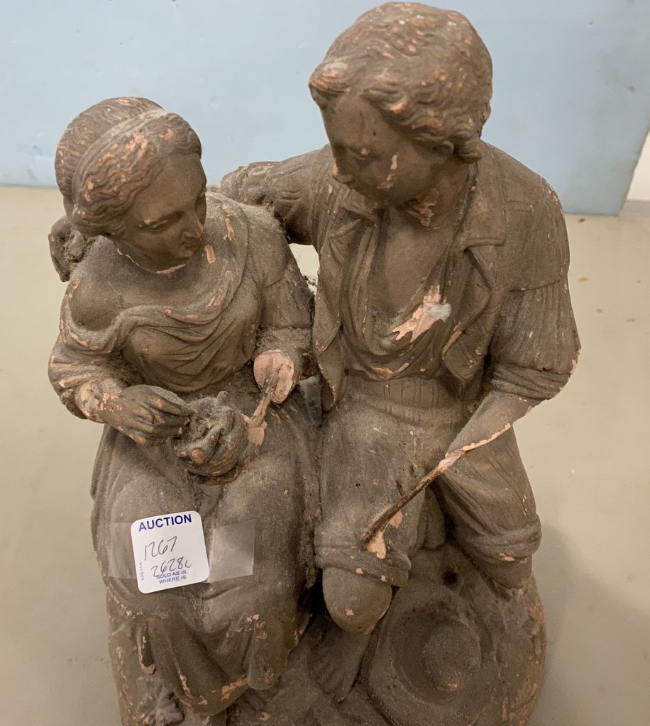 Paul & Virgin Plaster Statue, aged, has damage, 13"h. Paul & Virgin Plaster Statue, aged, has damage, 13"h.