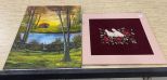 1288 T. Watson Landscape Painting and Needle Point Doves
