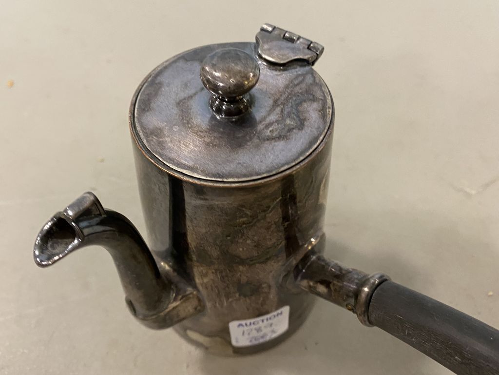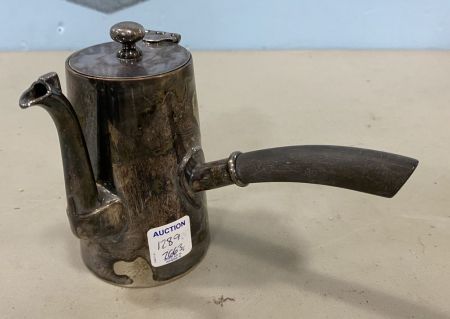 Antique Silver Plate Chocolate Pot, wood handle, has tarnish, 5"h. Antique Silver Plate Chocolate Pot, wood handle, has tarnish, 5"h.