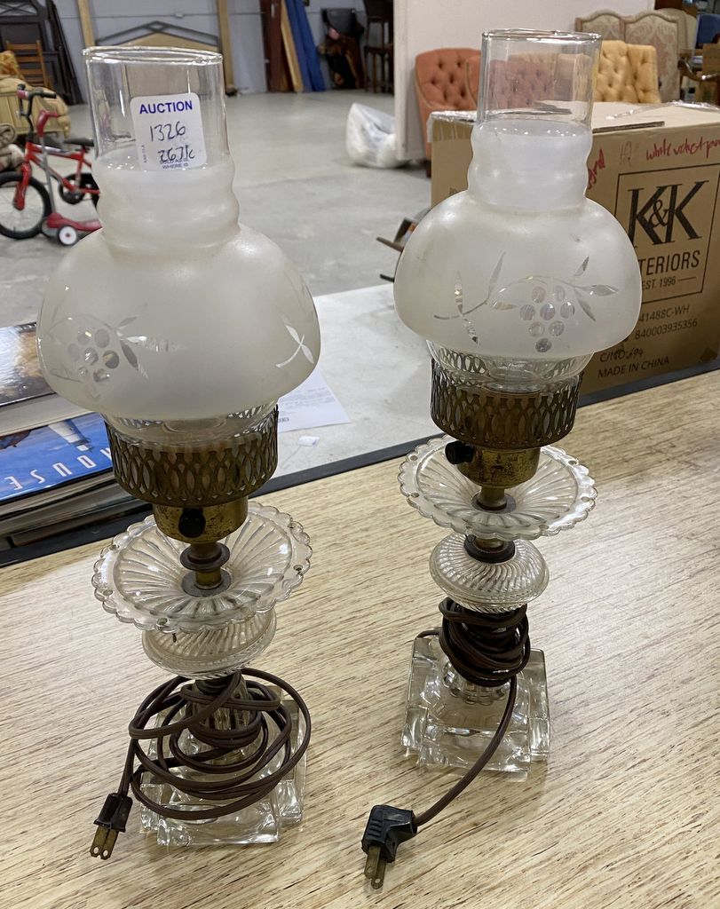 Pair of Vintage Glass Table Lamps, frosted shade, electrified, 17"h. Pair of Vintage Glass Table Lamps, frosted shade, electrified, 17"h.