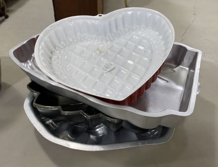 Group of 4 baking trays, including heart, Spiderman, Cathy, and flora shaped. Group of 4 baking trays, including heart, Spiderman, Cathy, and flora shaped.