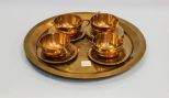 511 Great Fortune Navigation Co Brass Tray & Four Cups/Saucers