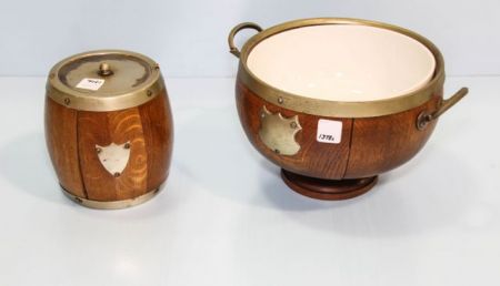 512 English Oak Biscuit Jar & Stoke on Trent Bowl