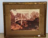 Appears to be the Old Swinging Bridge at Byram; 19 1/2" w., 16 1/2" h. Appears to be the Old Swinging Bridge at Byram; 19 1/2" w., 16 1/2" h.