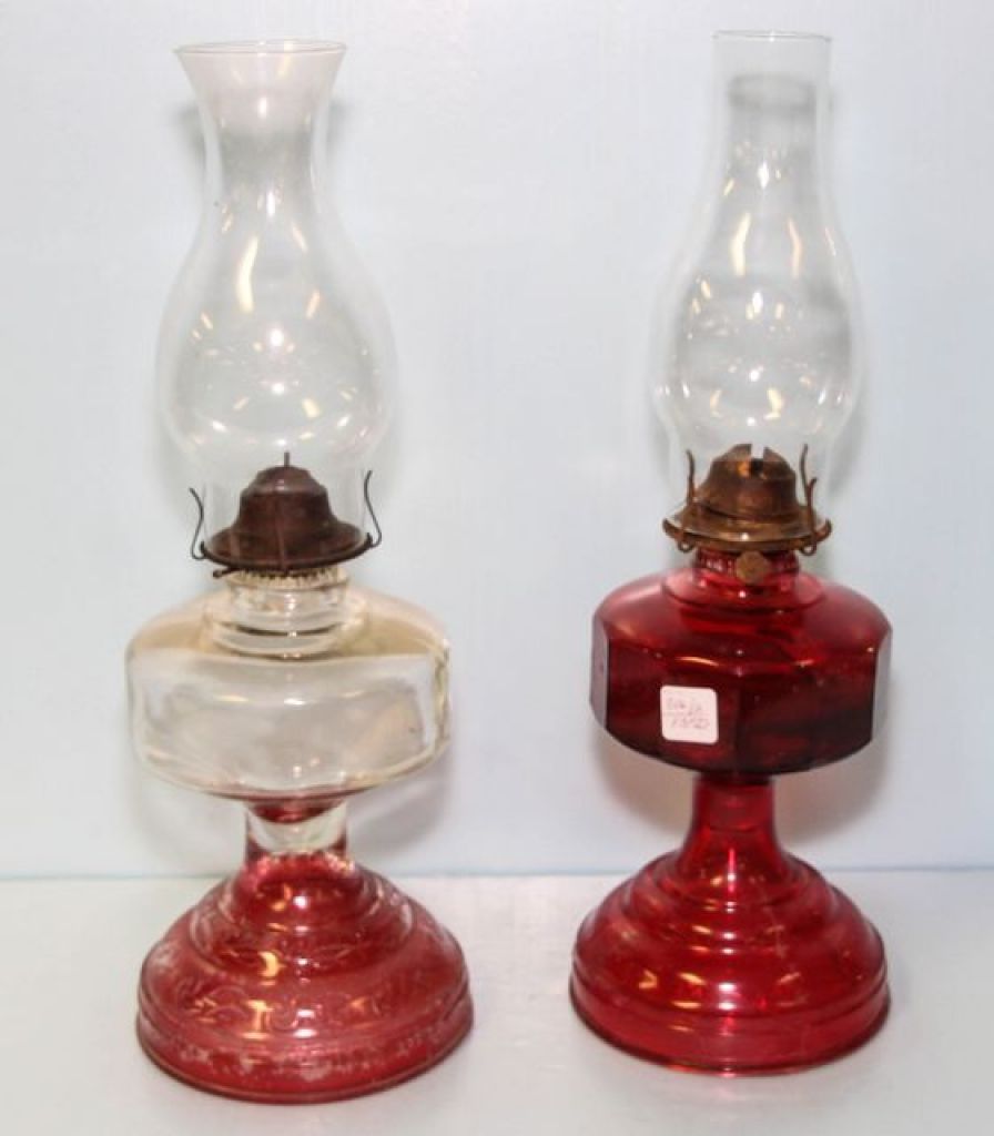806 Two Red and Clear Oil Lamps