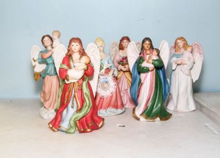 825 Five Homco Bisque Angels & One Lady Figurine