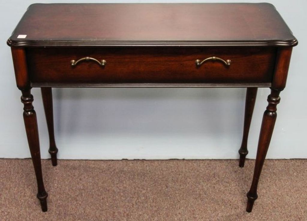 False drawer in front, leg needs repair; 35" w., 14" d., 29" h. False drawer in front, leg needs repair; 35" w., 14" d., 29" h.