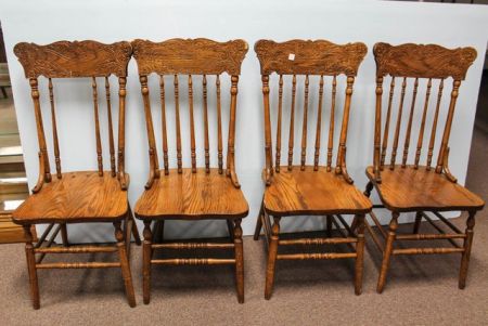 738 Four Oak Pressed Back Chairs