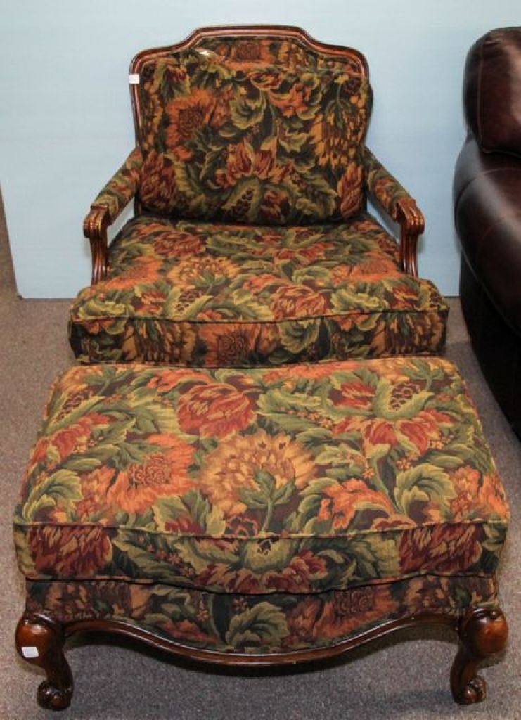 347 Walnut French Queen Anne Arm Chair & Matching Ottoman